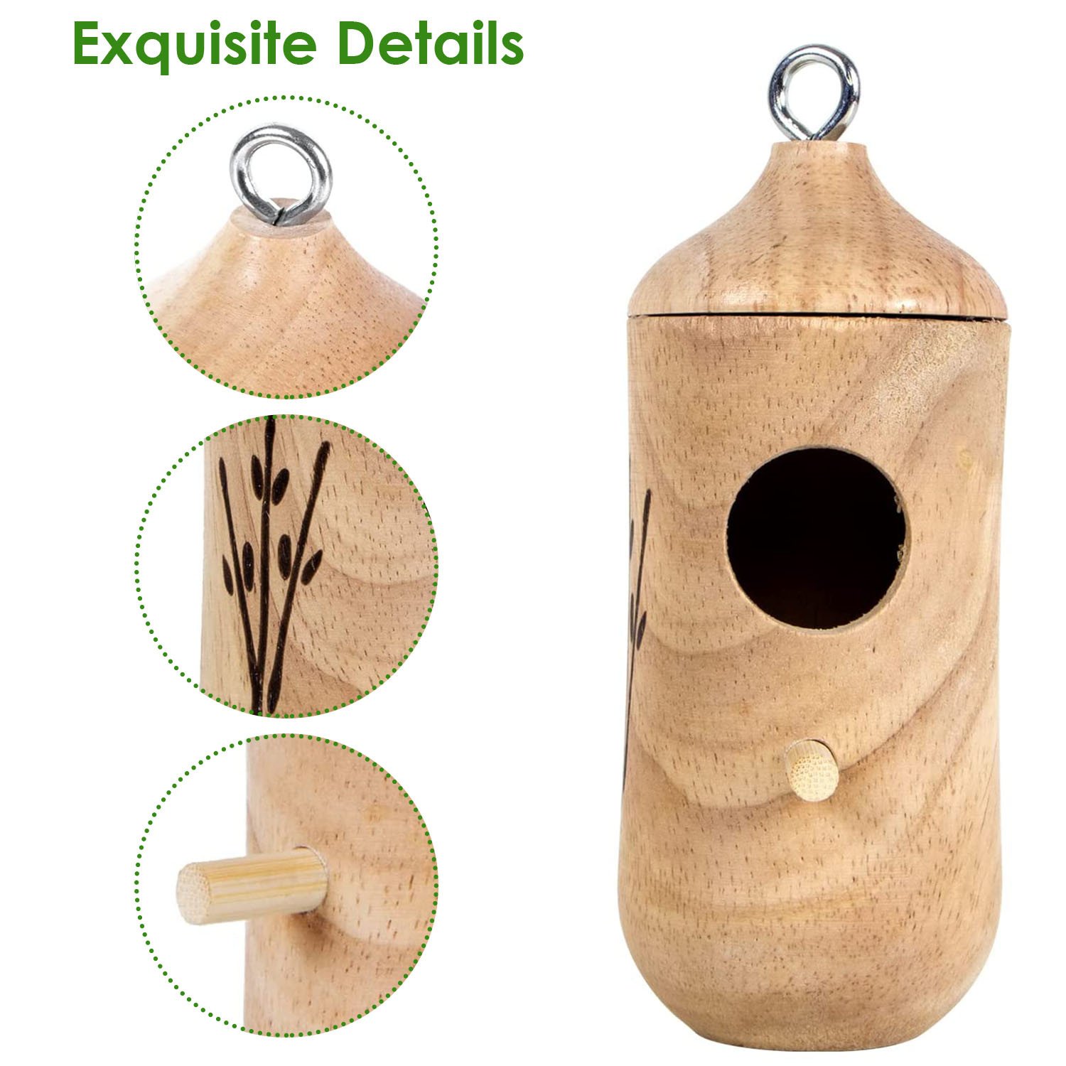 *Natural Material*:Made of natural wood,its natural taste will easily attract hummingbirds to build their nests. It’s environmental-friendly and durable. The exquisite workmanship also makes it an attractive ornament for your backyard or garden.