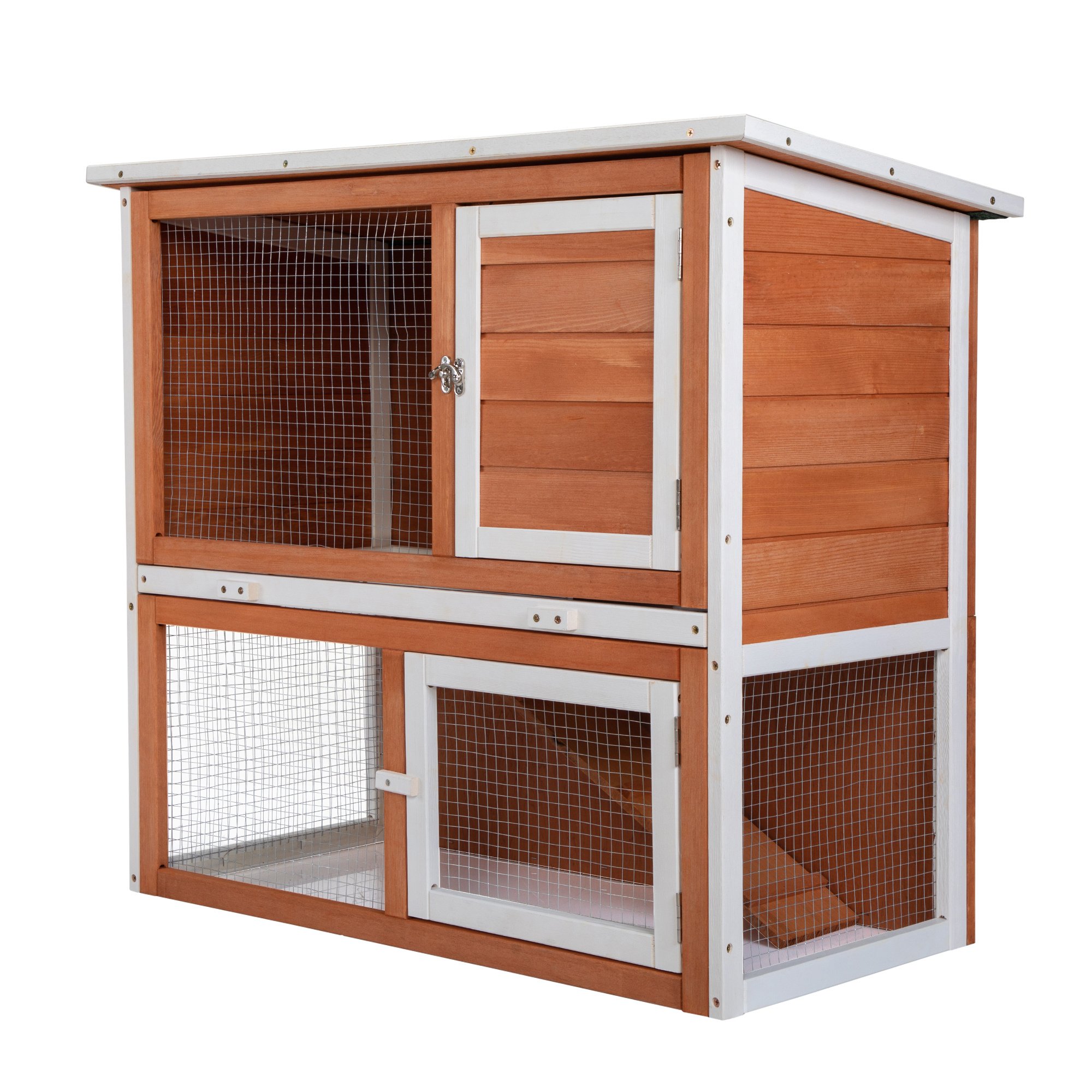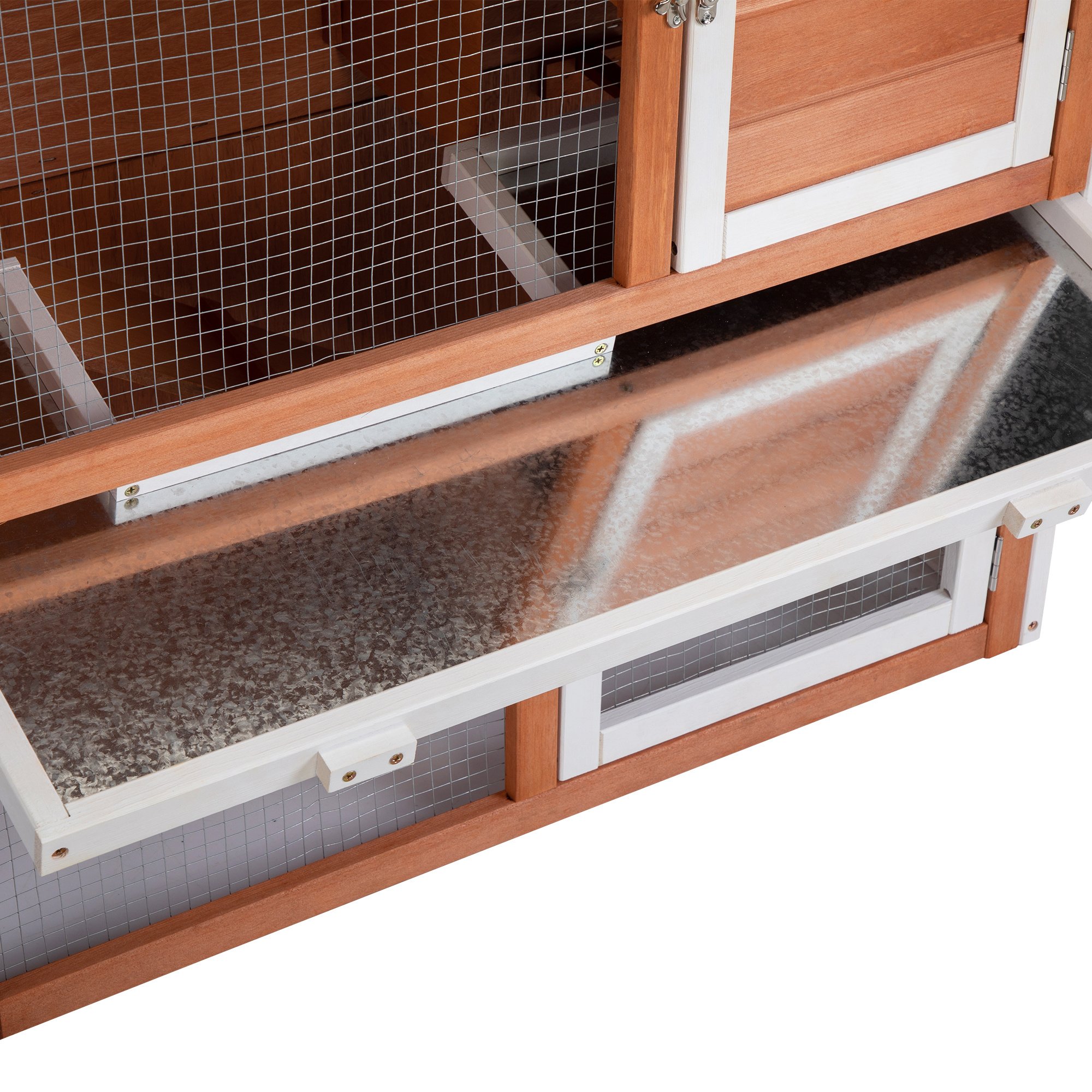 [Outdoor Hutch for Small Pets]: Featuring both ventilation and protection, the duplex hutch with a sloped asphalt roof, a private retreat, and an ample run, which builds a perfect house for small animals to live a safe and happy life.