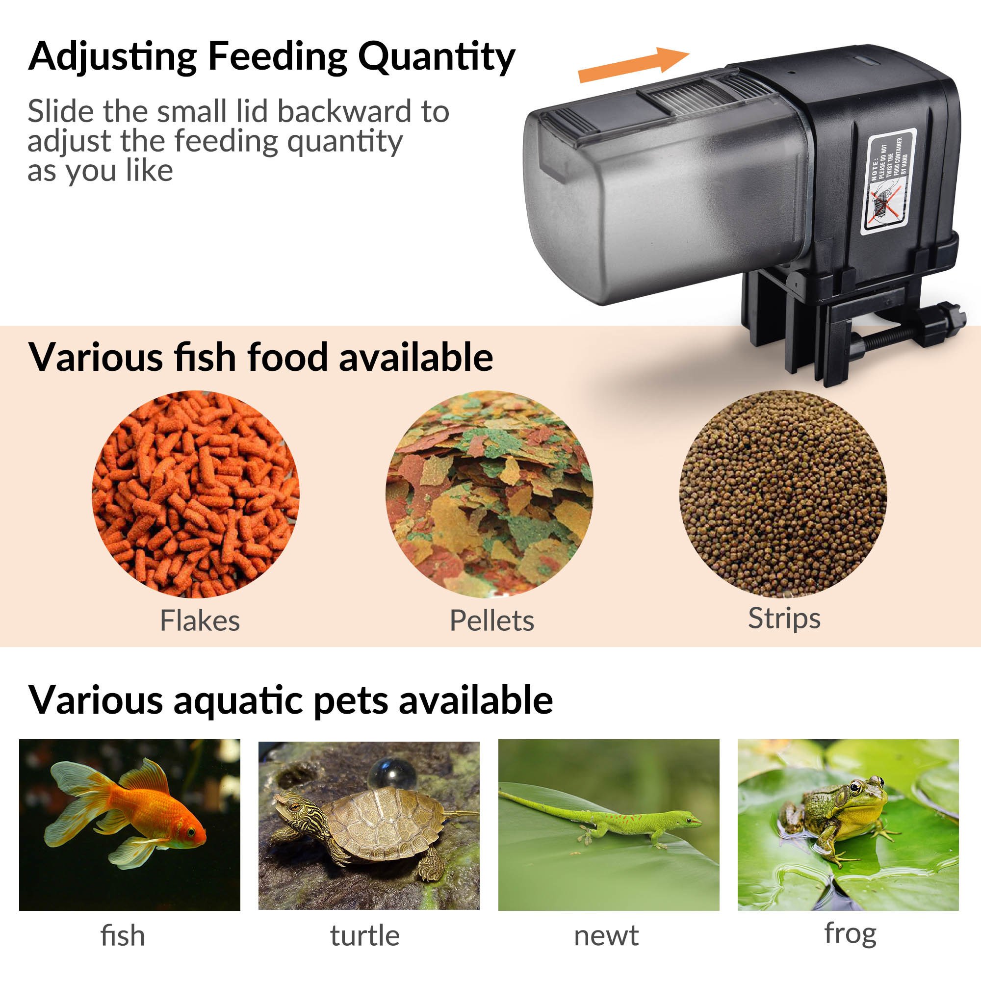 • Wide Application - Accommodates most types of food; including flakes; pellets; strips or crumbles; Perfect for different pets; such as fish; turtle; newt and frog; the best choice for your household aquarium