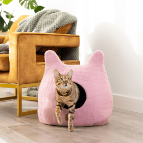 Cat Cave Bed -Handmade Wool Cat Bed Cave with Mouse Toy