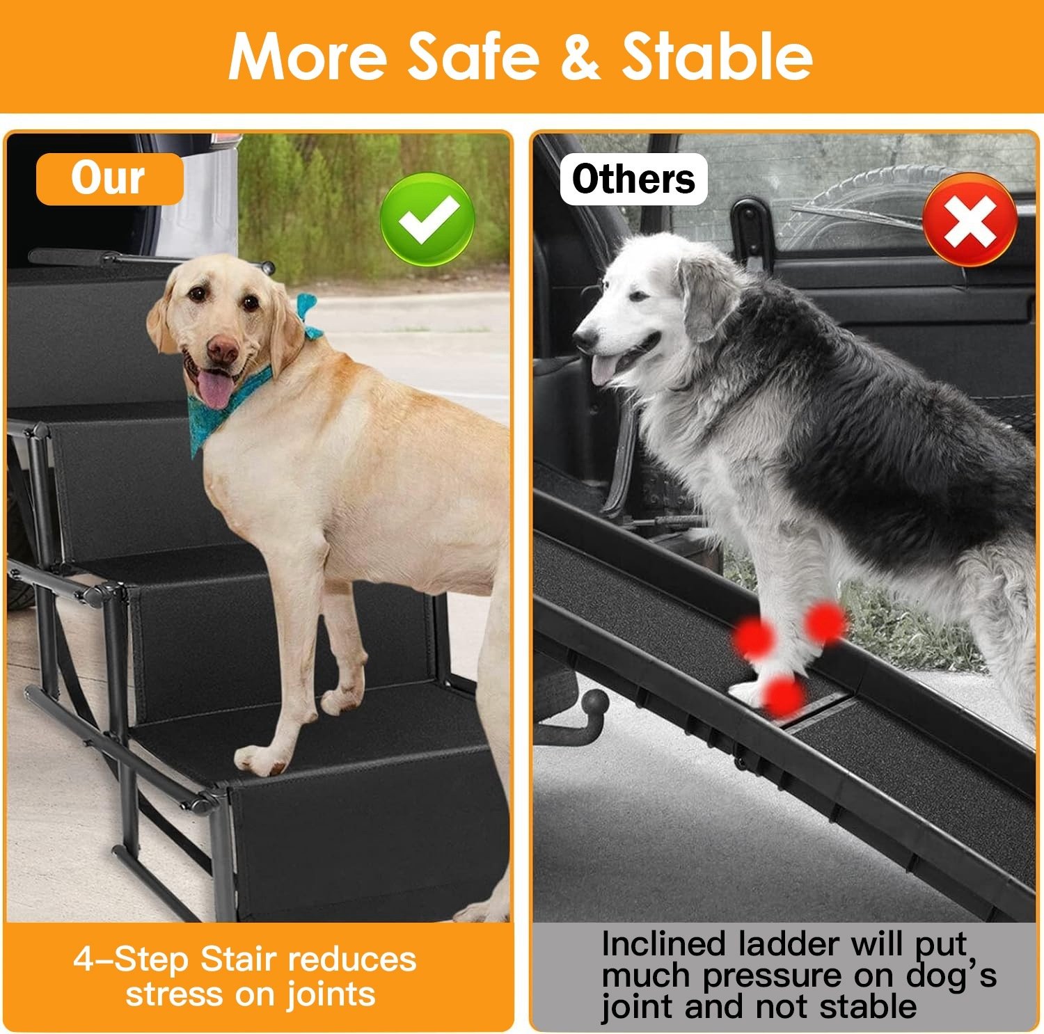 1.This 4-step walking surface of the dog ramps for car provides maximum tear resistant and claw grip for your dog and pet