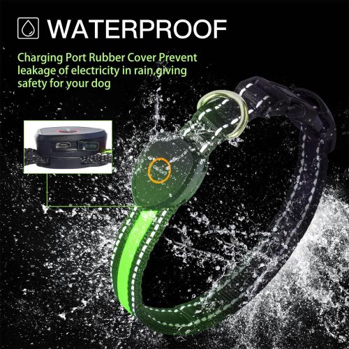 [Fully Adjustable Size]: No worries the size of our lighted dog collar; fits the neck of your dog or not; our light up collars for dogs at night is fully adjustable; and we provide 2 sizes that can easily find which one is fit for your dog [See in fifth picture]
