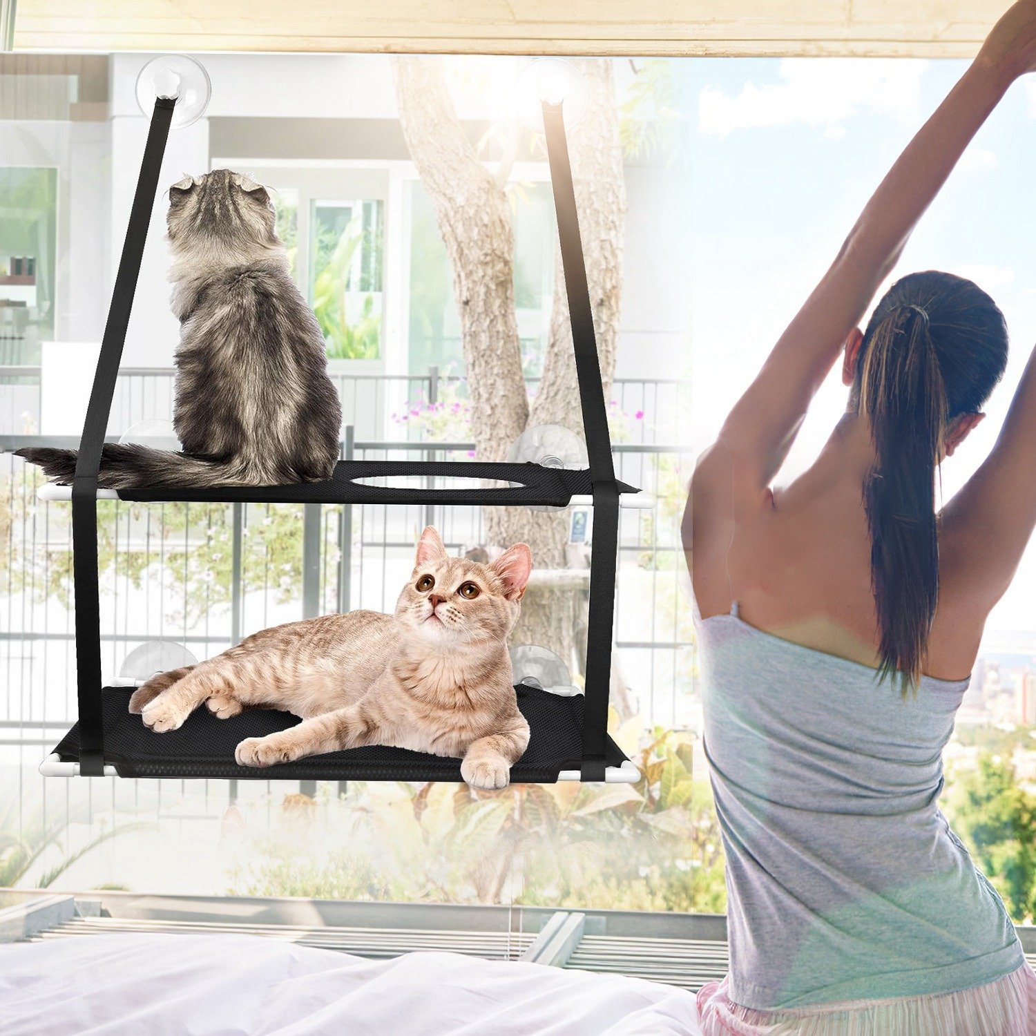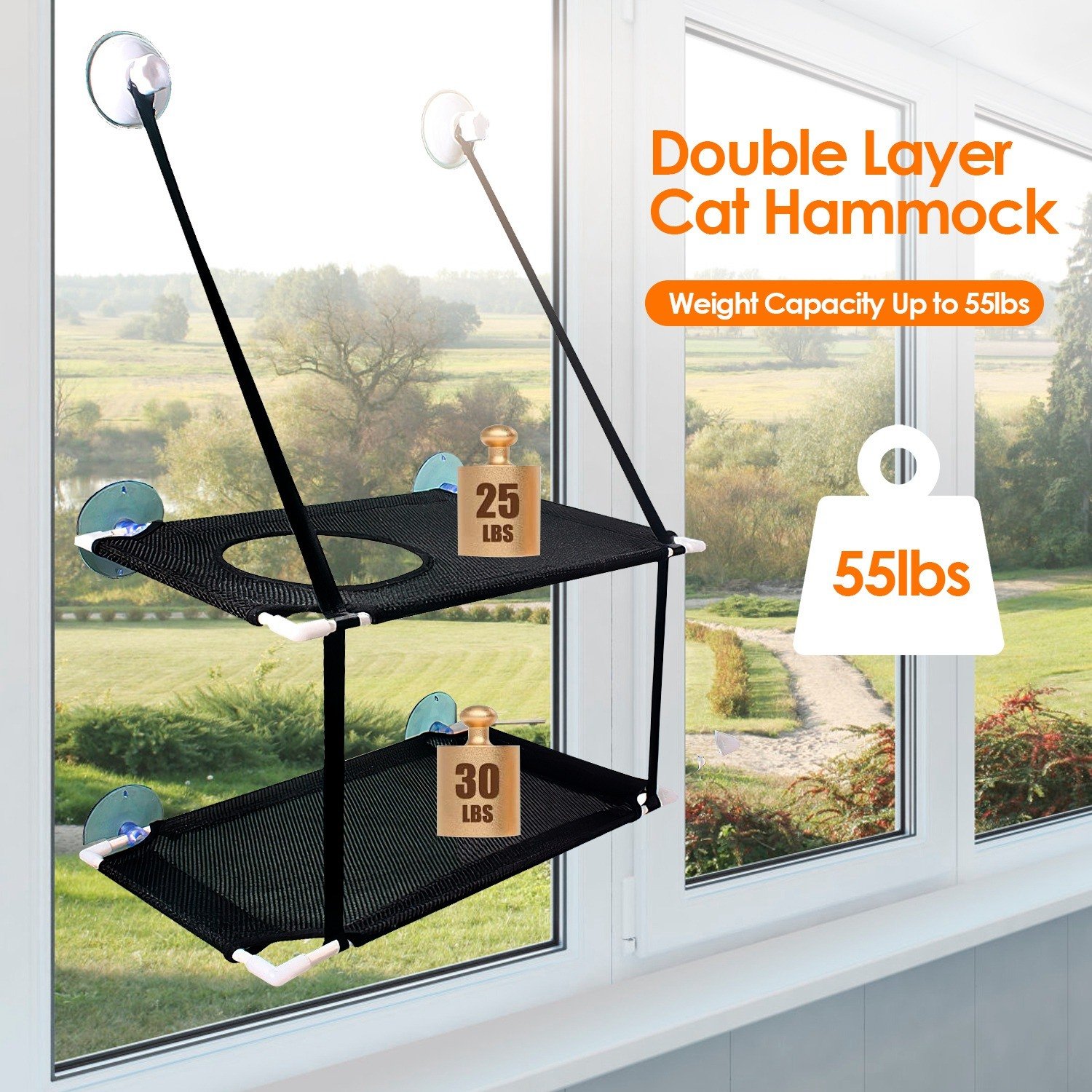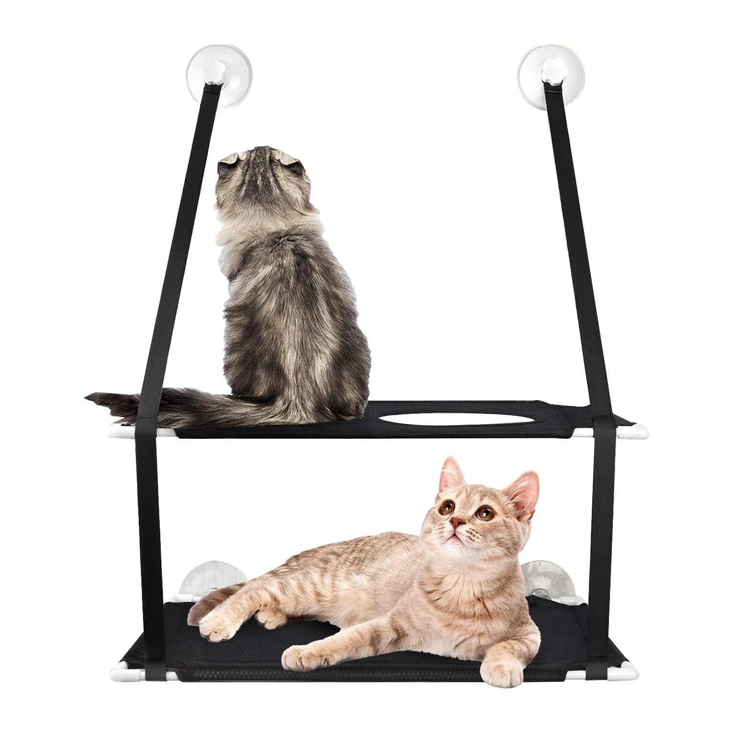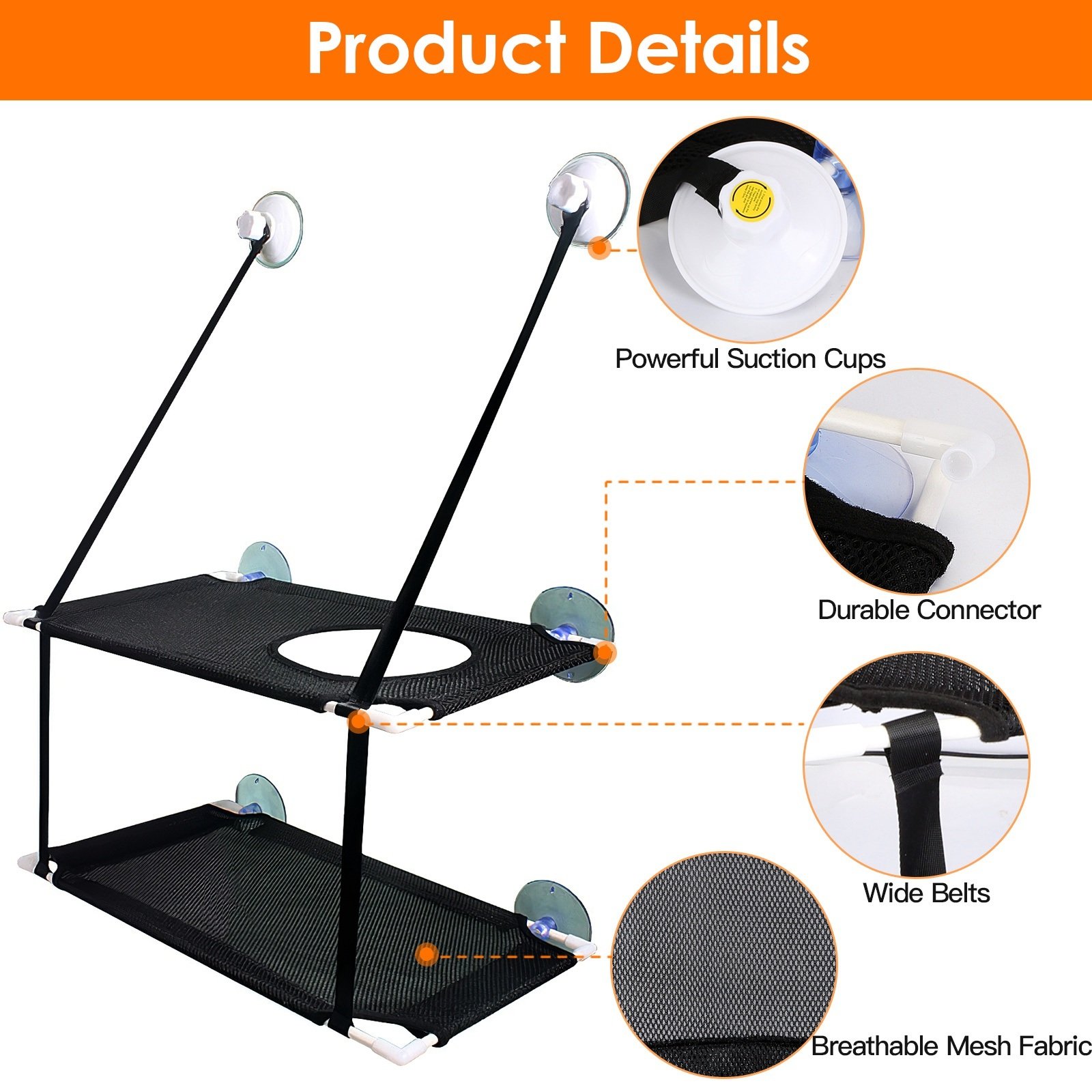 *Comfortable 360° Sunbathing*:An excellent window hammock won’t occupy extra valuable floor space. Image your cat napping on the high position,enjoying 360° full range of warm sunbathing and appreciating beautiful outdoor scenery,your cat will definitely love it!