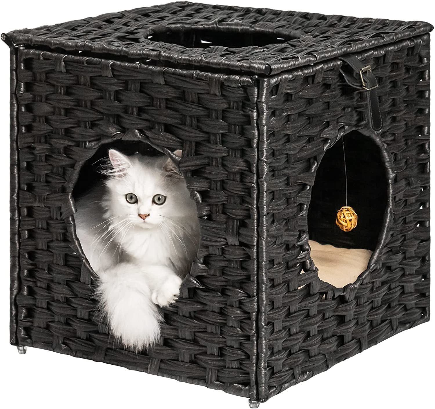 1.Mewoofun Handmade Cat Supplies Cat House for Indoor Woven Rattan Designed Pets