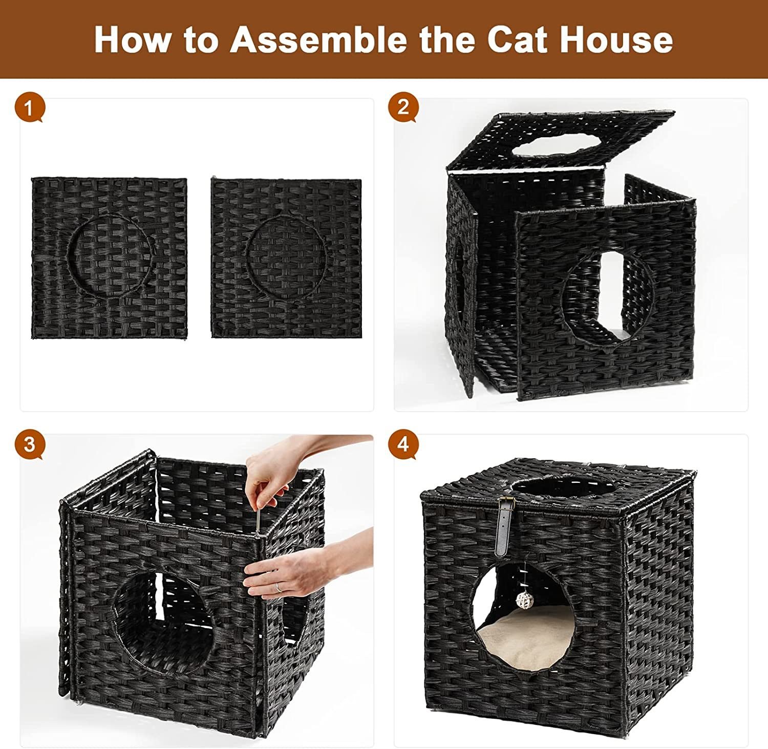 [Easy to Assemble & Clean] This hand-woven wicker cat bed adopts detachable design for easy cleaning. With simple assembly instructions; it can be set up in 10 minutes. It can also be disassembled to store when not in use to save space.