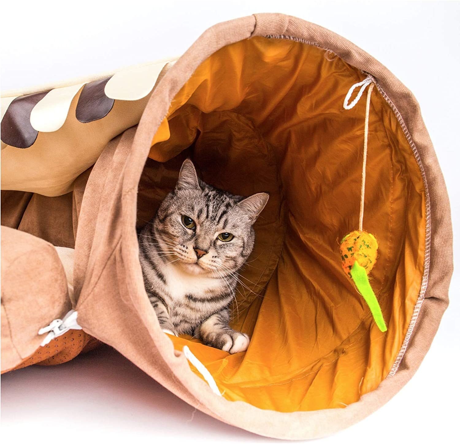 COOL DESIGN: beautiful and practical cat tunnel nest, the perfect combination of toy tunnel and cat bed, built-in sound paper and toys, Add more fun!
