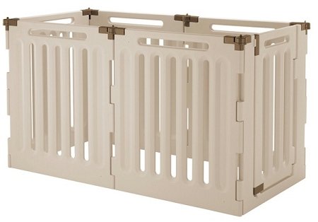 Because the playpen includes a lockable Gate Door, your pet has easy access in/out of the playpen. When used as a gate or room divider, the Gate Door allows you to move freely from one area to another without having to shuffle the entire unit. Do you need a smaller size? See theConvertible Indoor Outdoor 4 Panel Pet Playpen.