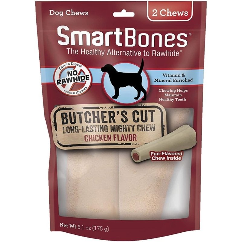 SmartBones Butchers Cut Mighty Chews are a new way to chew! These tasty vegetable chew treats are safe, natural, and 100% rawhide-free for maximum digestibility. They're made with real chicken meat and loaded with vitamins and minerals for your dogs health and enjoyment.