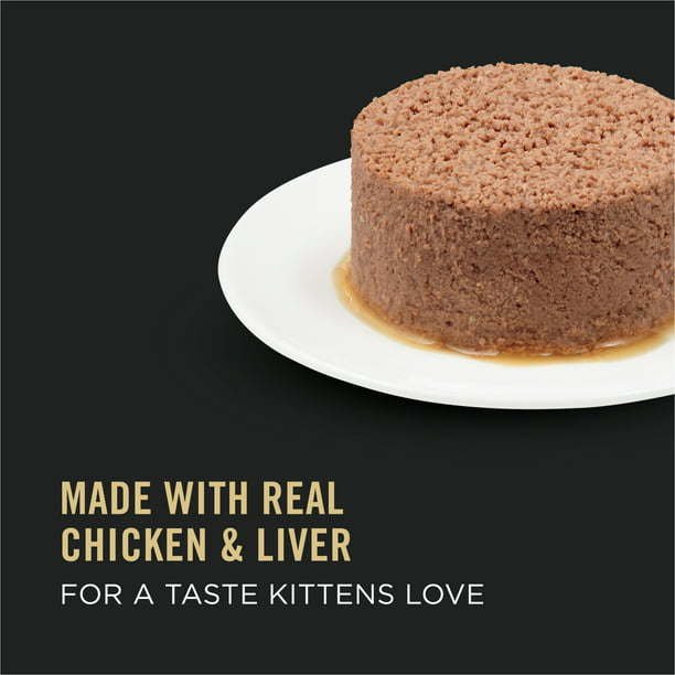 Purina Pro Plan kitten food made with real chicken and liver for a taste kittens love in a highly digestible formula for optimal nutrient deliveryChicken and liver cat food formula includes DHA for brain and vision development and antioxidants to support a kitten's developing immune systemPurina kitten food made with 25 essential vitamins and minerals, including vitamin A and taurine, an amino acid, to support healthy visionHigh protein kitten food specially formulated to support a kitten's healthy growth and development in the first yearCan kitten food pate is proudly manufactured at Purina-owned facilities, and you can try it risk free