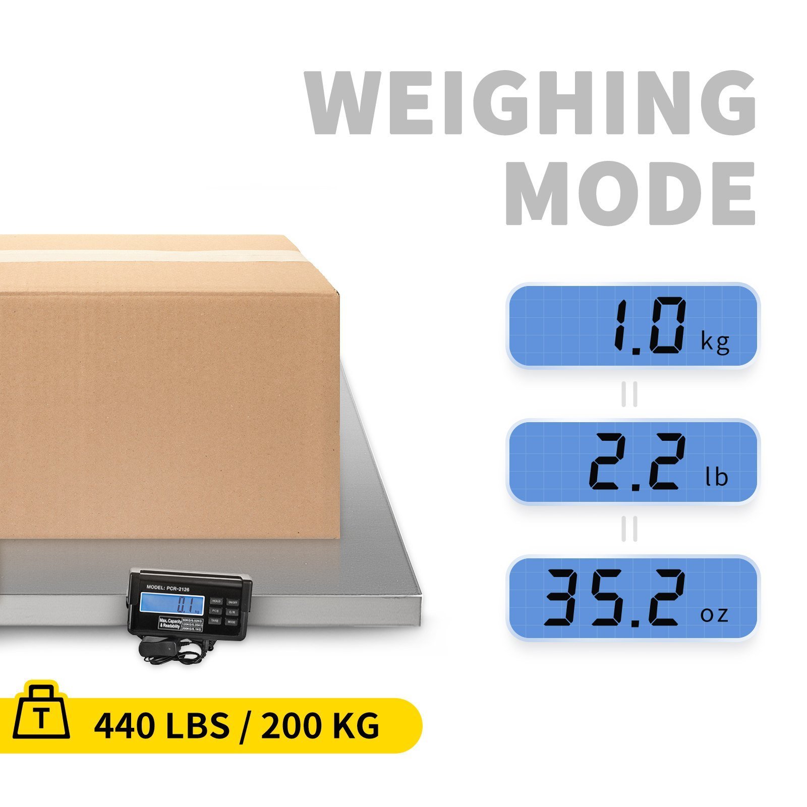 440 lbs/200kg Max capacity to weigh small and large items.