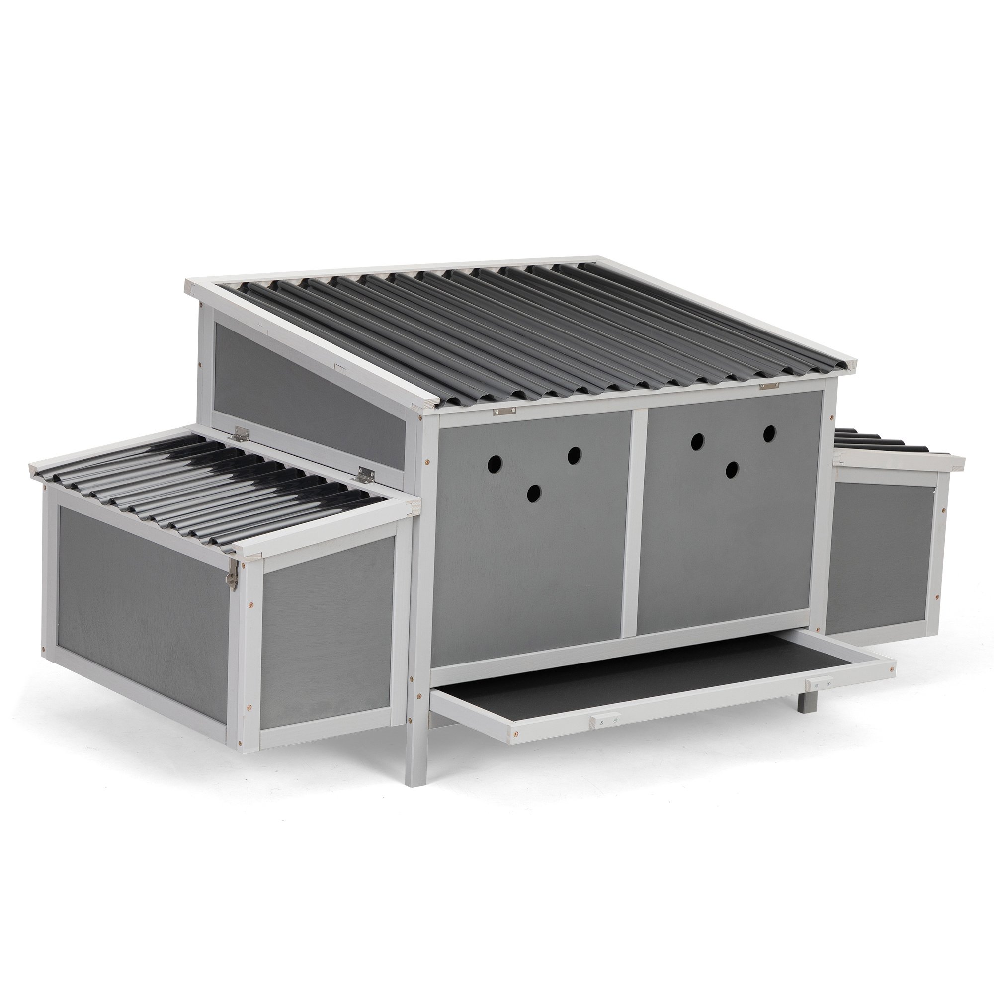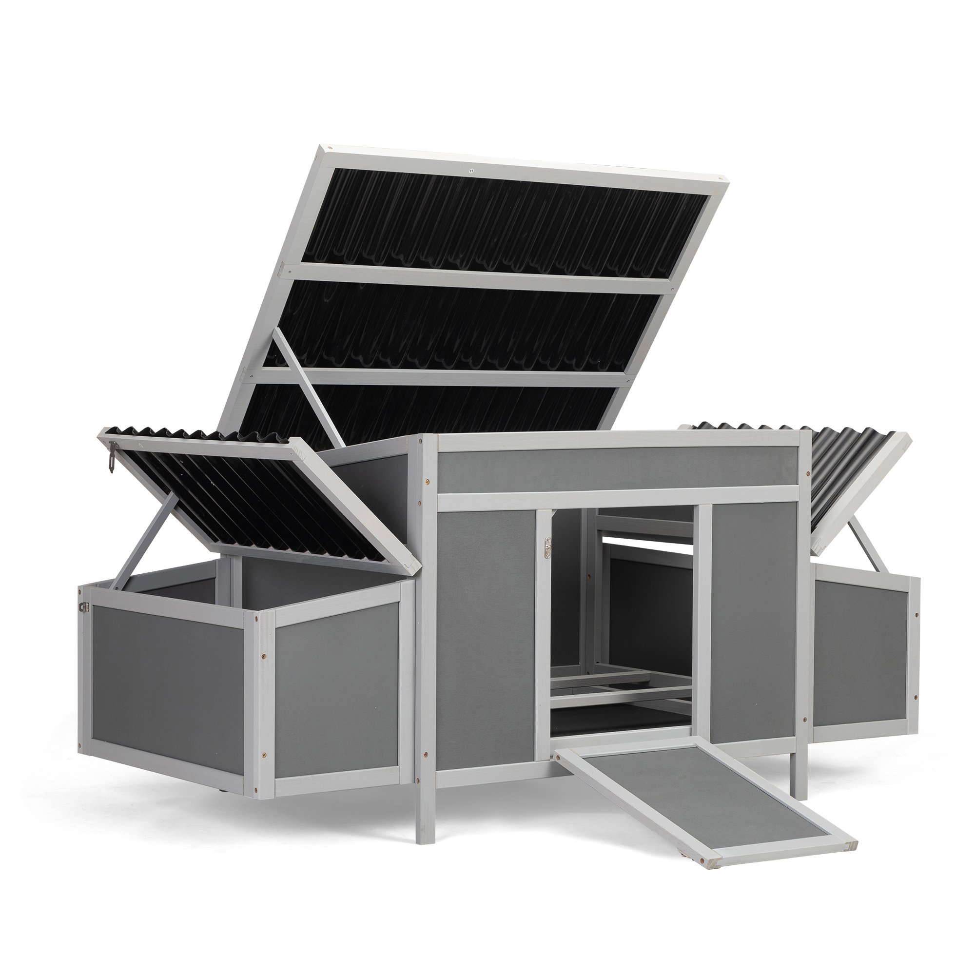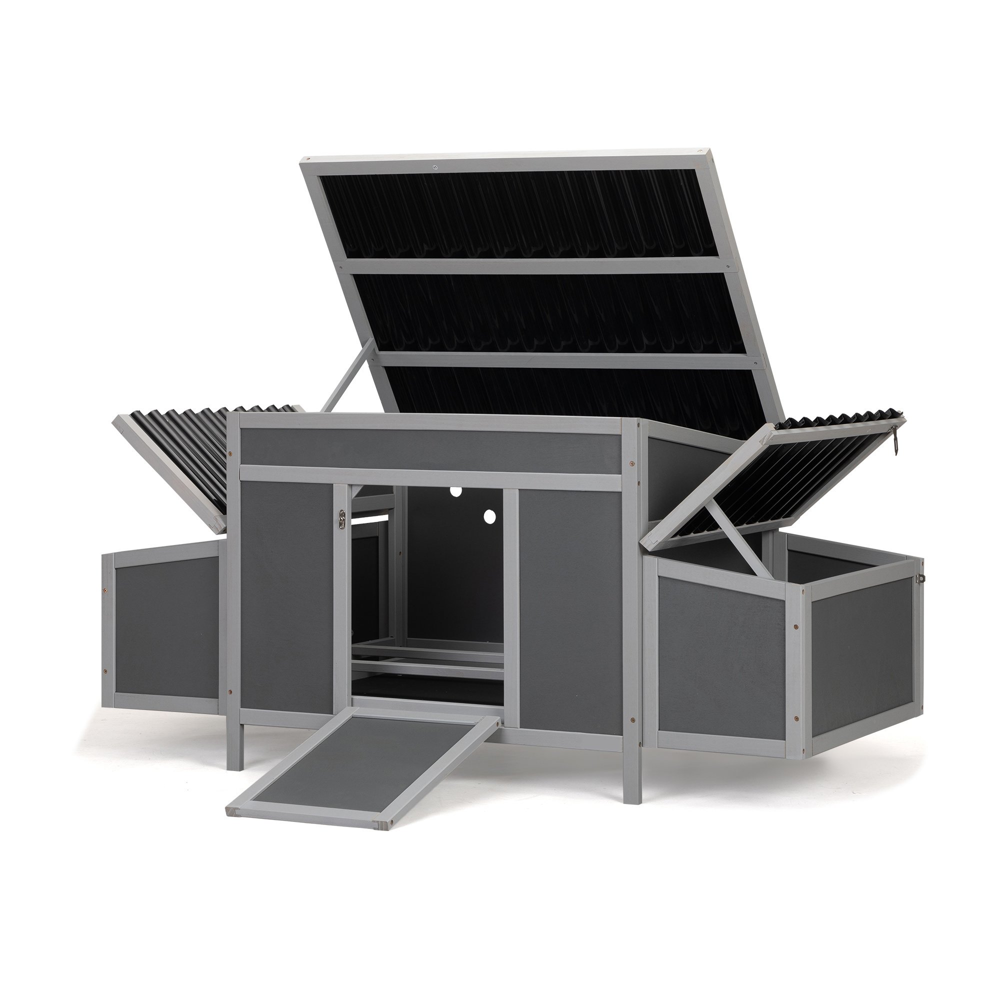 [Easy to Clean]: The 3 openable roofs and pull-out tray allow you to clean thoroughly and breezily. The door doubles as a ramp for easy access. The 2 egg boxes can be locked for safety.