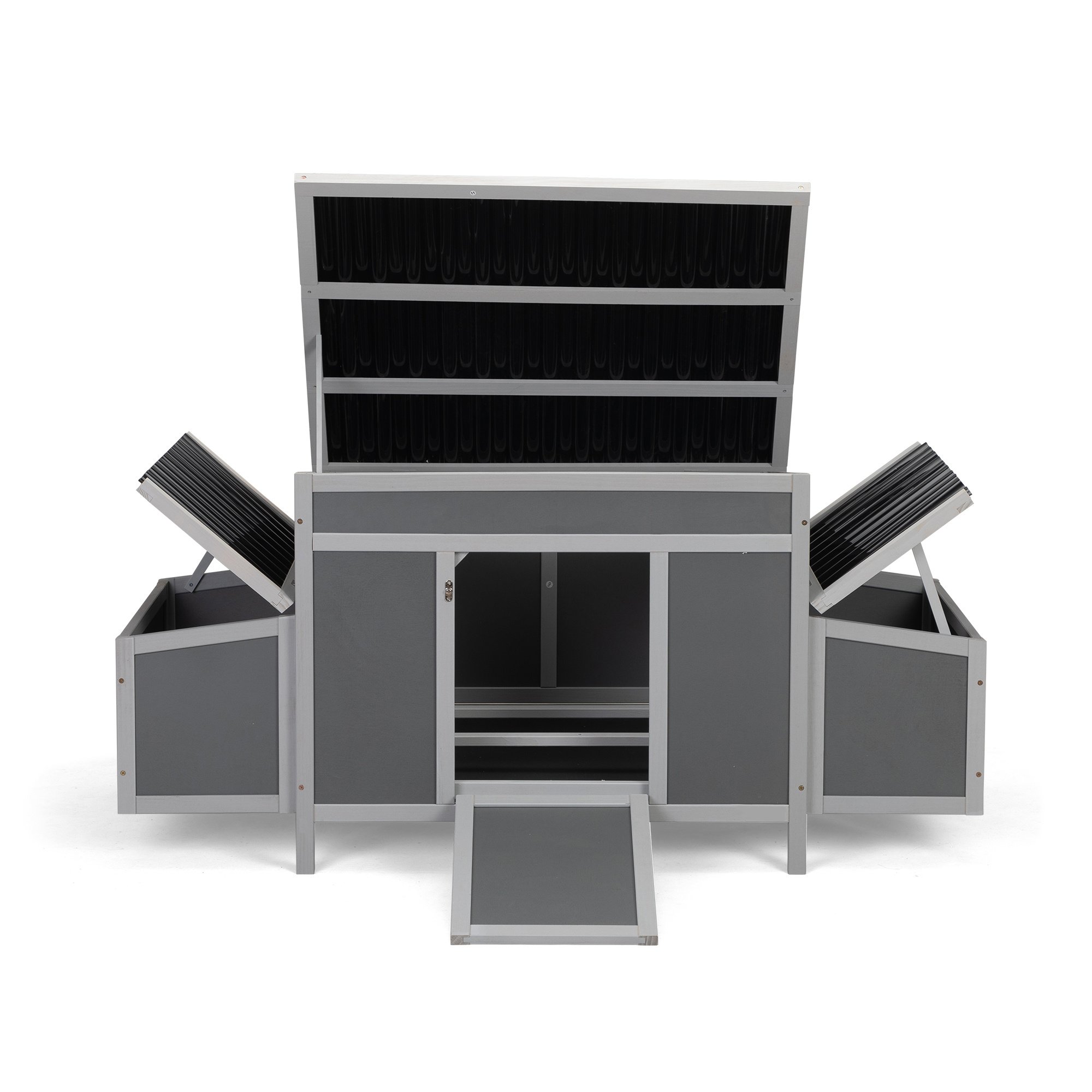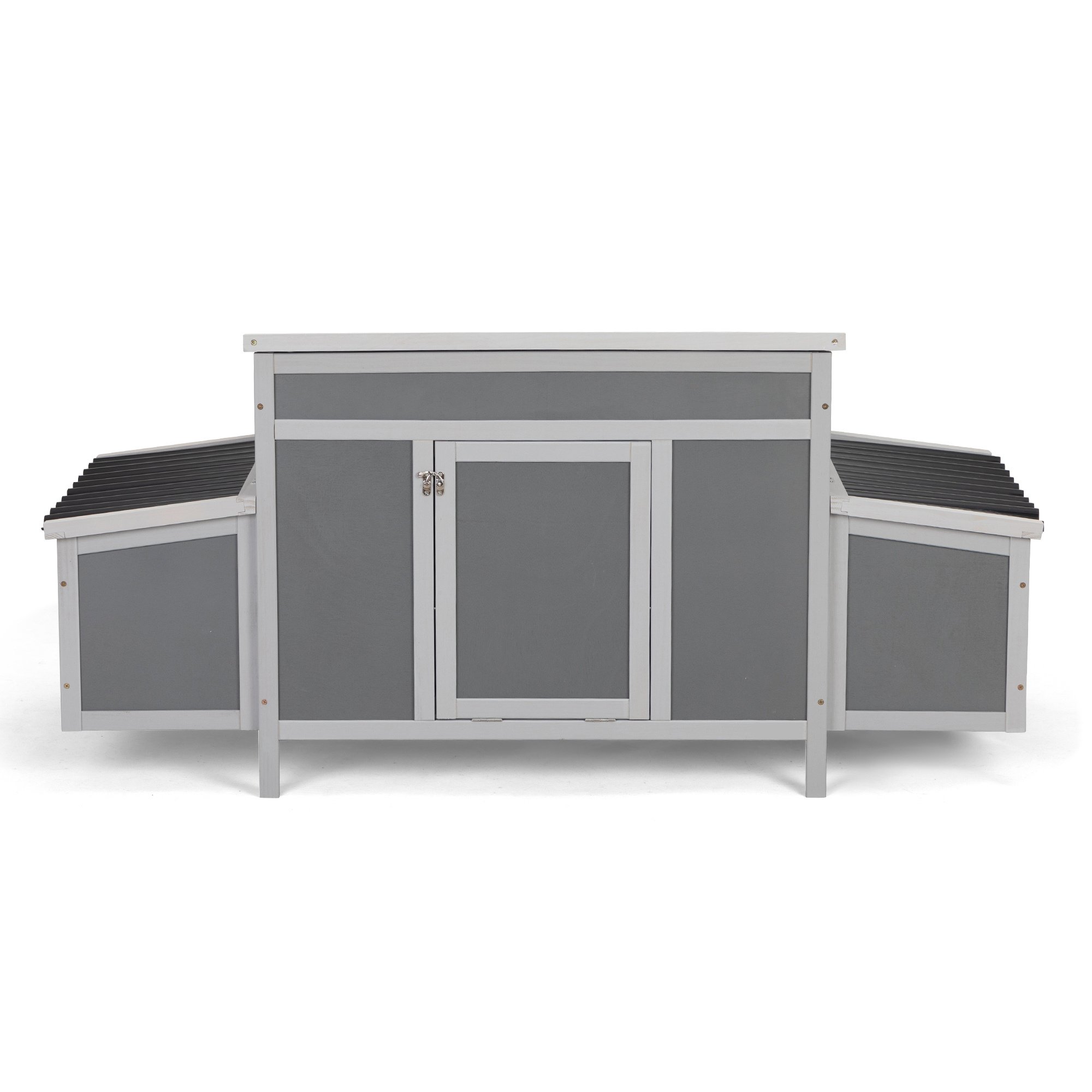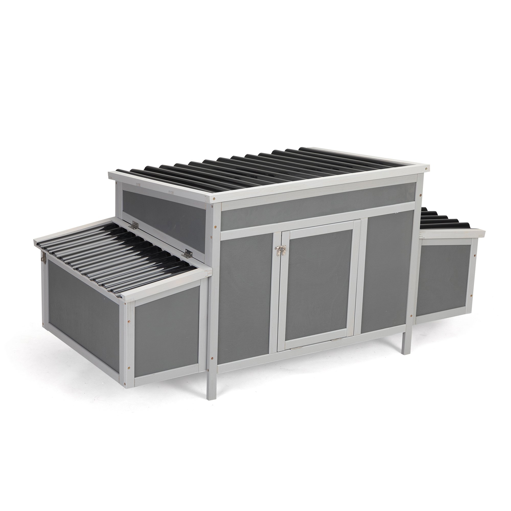 [Easy to Clean]: The 3 openable roofs and pull-out tray allow you to clean thoroughly and breezily. The door doubles as a ramp for easy access. The 2 egg boxes can be locked for safety.